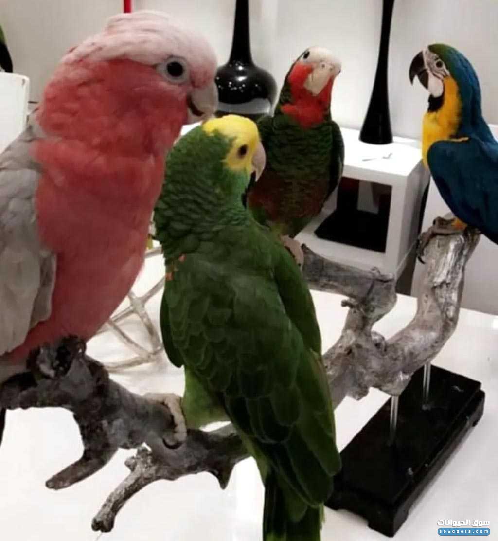 للبيع ببغاوات جامبو استيراد من الخارج احجام ممتازة وبوجد جميع الانواع والألوان